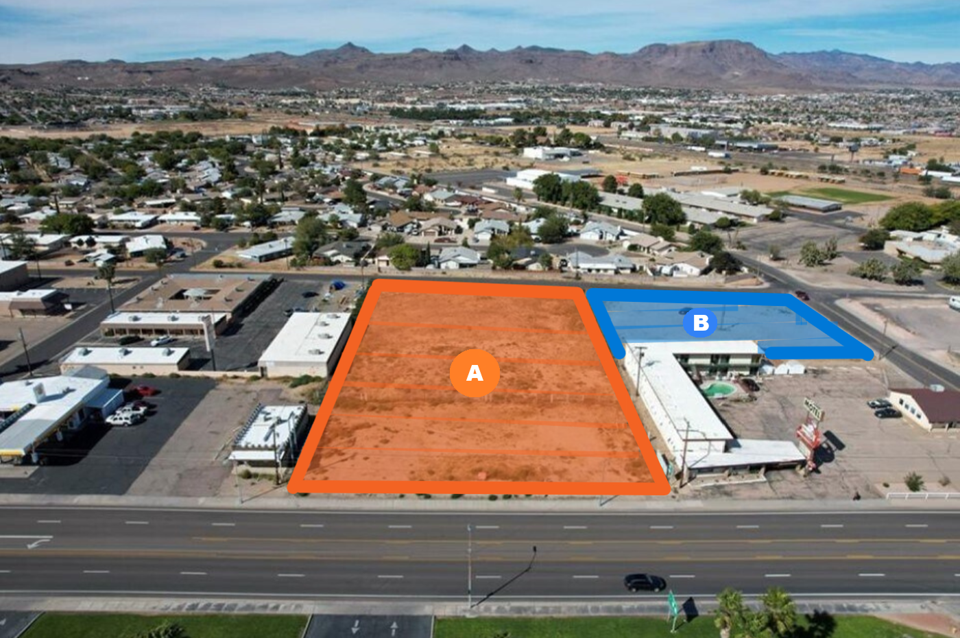 Jigar “Jay” Desai, Ryan Bodine, and Kishan Gohel are proud to present 2.31-acres of combined land for sale, located in the rapidly developing city of Kingman, Arizona. Parcel A consists of 1.57-acres and Parcel B consists of 0.74-acres of commercial land. Zoned C-3, the parcels provide excellent flexibility for a range of commercial, retail, or mixed-use projects.